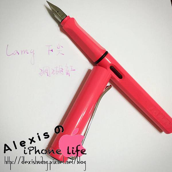 粉紅色的F尖搭配Lamy珊瑚紅